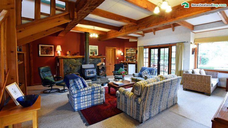 The Lodge offers quality B&B accommodation with character. Enjoy warm and relaxed hospitality, a comfortable bed and a hearty breakfast before exploring Murchison and the surrounding countryside. The warm and welcoming timber Lodge is set on four quiet acres of mature wooded gardens and paddocks. Surrounded by mountains and bordering the Buller River it feels miles from anywhere but a 5-10 minutes walk will have you to "down town" Murchison with its pubs, cafés and eclectic shops. Stop for a couple of nights - there's plenty to do and you can return at the end of the day to friendly faces and a cold beer on the veranda or a wine in front of the log fire.