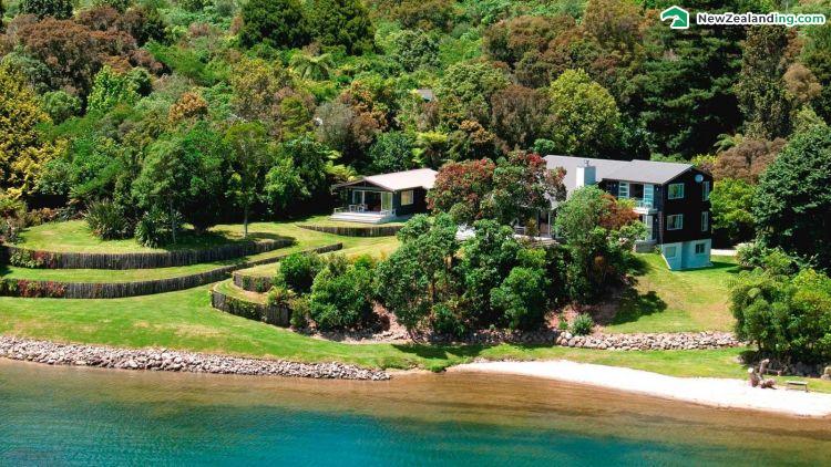 Wildwood Lodge, Rotorua. Absolute lake edge luxury lodging and set in five acres of magnificent landscaped gardens with two hundred metres of totally private lake frontage on the shores of tranquil and historic Lake Rotoehu. Wildwood is one of the largest privately owned lake edge estates in the North Island with unsurpassed lake views, and no other houses being visible from anywhere on the entire estate, Wildwood is located only fifteen minutes from the airport and a comfortable and pretty drive from the city, yet away from the sulphur smells. It has both helipad and float plane docking facilities.